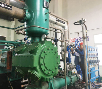 Baja energía 2100 kg/h 19bar Bomba de CA recíproca húmeda Cojinete del motor Compresor generador de CO2 de grado alimenticio sin aceite Mina estacionaria